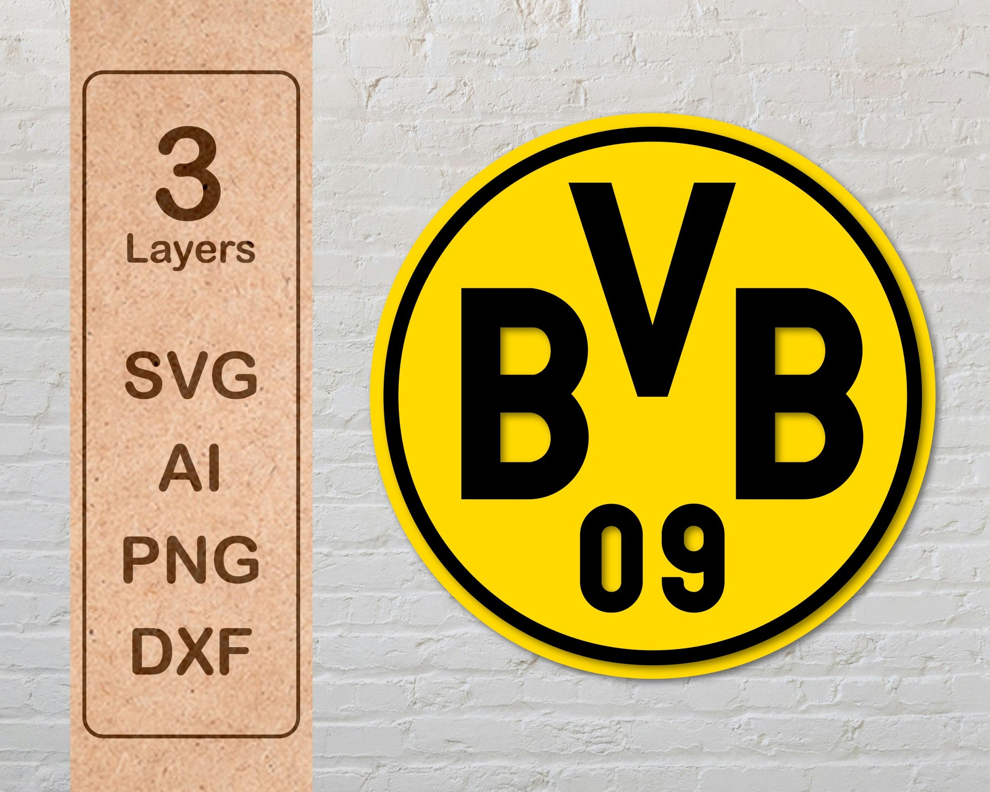 Borussia Dortmund FC football club logo Multilayer Stacked SVG DXF laser cut file.